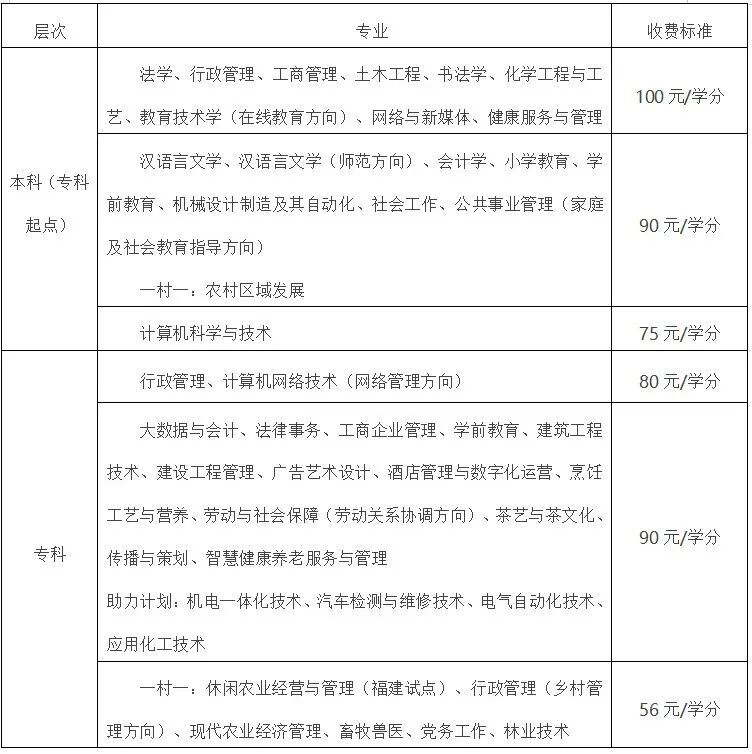 2.现场报名:持报名材料到宁德开放大学一楼学习服务中心办理报名手续。 四、招生专业及收费标准