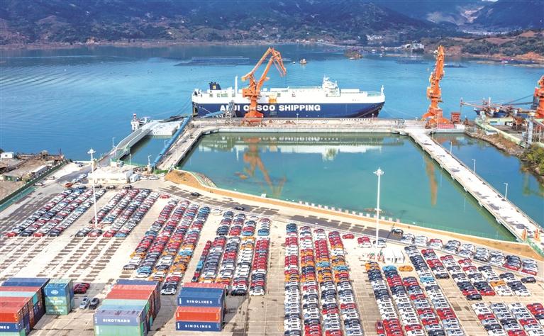 新能源汽车出口。王志凌 摄 奋楫扬帆,向海图强。 “十四五”期间,作为福建省东北部天然深水良港,宁德港依托三都澳“水深港阔”的独特优势,向“亿吨大港”奋进。 2024年,宁德港货物吞吐量突破8326.96万吨,集装箱吞吐量达22.2万标箱,同比分别增长6.22%和18.23%;2025年1至11月,宁德市域共完成港口货物吞吐量9329.39万吨,同比增长24.61%。 经略海洋,行稳致远。 站在新起点,宁德港以更高站位、更宽视野锚定时代坐标,开启“一湾藏天下,亿吨赴新程”的壮阔征程。 设施升级筑牢发展根基 “十四五”期间,宁德港以设施扩容为核心,构建“三港区一港点”错位发展格局。截至2024年底,全市沿海生产性泊位达62个,其中万吨级以上19个,漳湾21号泊位(15万吨级)的投用,填补了宁德10万吨级以上深水泊位空白,市域港口年通过能力5032万吨,较“十三五”末增长67%,基本解决了船舶压港、海上过驳等历史问题。 2025年,宁德加速推进港航项目建设,全年计划完成港航投资5.08亿元,截至11月已完成4.69亿元,占比92.3%。 漳湾作业区7号泊位改扩建工程完成交工核验,18-20号泊位新建工程加速推进,坪岗作业区4-5号泊位续建,三沙港点3000吨级码头扩能改造等项目有序实施。 智能运营激活创新引擎 近年来,宁德港不断推进传统码头向智能化转型。 今年12月,福州港宁德市域首个自动化无人堆场在漳湾18号泊位投用,融合激光雷达、机器视觉、AI动态路径规划等技术,实现轨道式远控龙门吊全流程无人化作业。操作人员从户外转为室内远程操控,作业效率提升30%以上,这标志着宁德港向智能化转型迈出关键一步。 绿色转型同步推进。2024年完成5个泊位岸电设施建设,全年接驳岸电1186艘次,用电量64.42万度,减少二氧化碳排放约500吨;2025年推广新能源货运,大宗散货绿色疏运比例提升至65%。 此外,通过“智慧港口”平台、AI智能化视频监控、风险监测预警等手段,构建“一体系三机制”安全监管模式,提升港口智能化营运水平。 能级跃升港产联动发展 “十四五”期间,宁德港深度融入“四大经济”战略,为锂电新能源、新能源汽车、不锈钢新材料、铜材料四大主导产业提供高效物流支撑。 2024年,宁德四大主导产业通过港口运输货物2930万吨、集装箱4.85万重箱,占总吞吐量35.2%;2025年1至9月,新能源重卡出口149辆,货值1.04亿元,成为外贸增长新亮点。 今年10月,上汽宁德基地991辆名爵汽车从漳湾7号泊位启航,通过内外贸同船运输模式,压缩物流时间30%、降低成本15%。为保障此类业务,宁德边检站推行“24小时全时段通关”,实现船舶“零等待”“零延时”。“宁德造”乘用车首次出口沙特阿拉伯的案例,彰显港产联动成效。 以港兴业,拓展腹地。今年1至11月,依托衢宁铁路完成海铁联运1552标箱,同比增长15%;通过江西弋阳中亚矿业完成蛇纹石外贸出口4.89万吨。福州港(宁德)上饶“飞地港”开港,打通闽赣产业协同通道,形成“港口+产业+腹地”联动格局。 如今,港口经济已成为宁德区域发展的“压舱石”。宁德港正以“亿吨大港”的雄姿,书写港城融合发展新答卷。未来,宁德港将向能源资源保障港、供应链枢纽港、开放门户港与绿色智慧港奋进,持续以港口能级跃升激活发展新动能,助力区域经济高质量发展。(闽东日报记者 郑凯) |