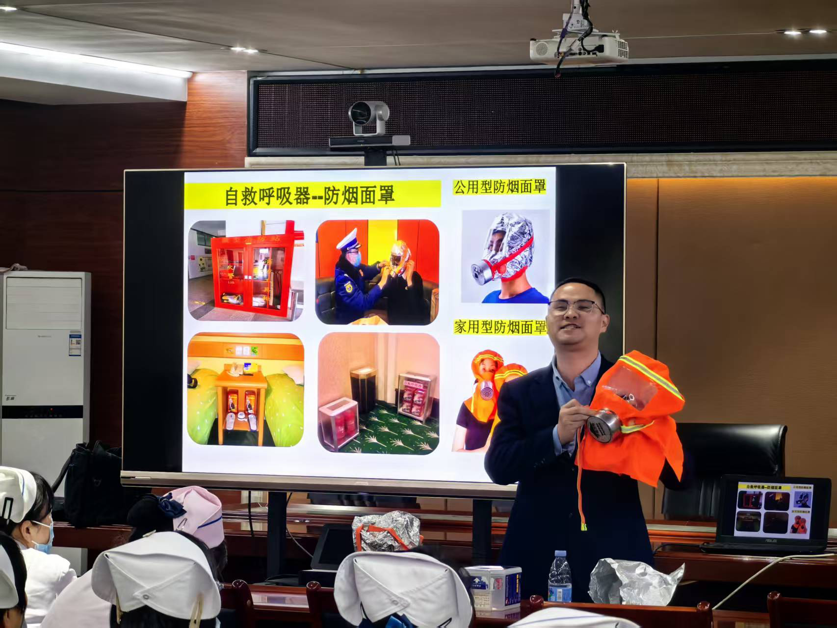 12月18日,活动特别邀请专业消防安全讲师进行系统专业辅导。许治国 摄 活动特别邀请专业消防安全讲师进行系统专业辅导。培训辅导时,消防安全讲师以医院消防工作的特殊性、重要性为切入点,围绕医院火灾与自救、一懂三会三不、四个能力建设,遇到突发事件如何第一时间进行处置、报警、灭火疏散救援等安全内容进行深入讲解,并现场指导灭火器、消防栓(消防软管卷盘)、防烟面罩等的使用方法,帮助现场职工及护理员在实操中不断提升消防意识,掌握消防技能。