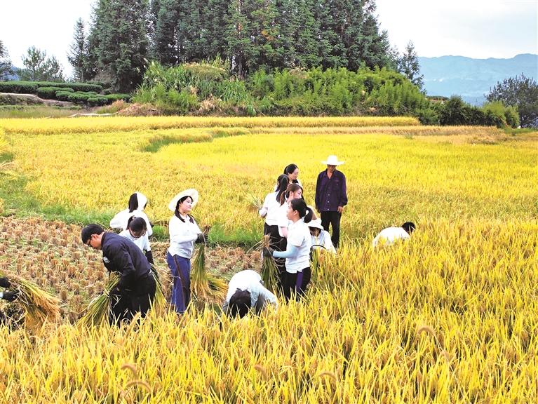 “四下基层”培训班学员在收割稻谷 詹丽菁介绍,犀溪镇党校甲坑现场教学点已承接了数百批次闽浙两地党员教育活动。一个村庄缘何办起乡镇党校现场教学点? 甲坑村,地处闽浙两省的寿宁、福安、泰顺三县交界处,是著名老区基点村,也曾是闽东革命中心之一。这里曾经成立过红带会、中共闽东特委福寿办事处、中共闽浙边临时省委等。粟裕、叶飞、范式人等老一辈革命家在此奋斗过。 红色基因蕴含发展动能。近些年,甲坑村立足资源禀赋,以党建领航产业,串接红色遗迹,打造出犀溪镇党校甲坑现场教学点、中共闽浙边临时省委旧址、岗垅革命纪念馆、红军路等爱国主义教育场所,参与承接各级党组织的主题党日活动及红色研学活动。