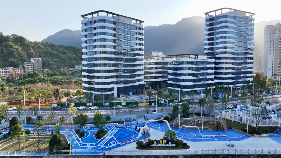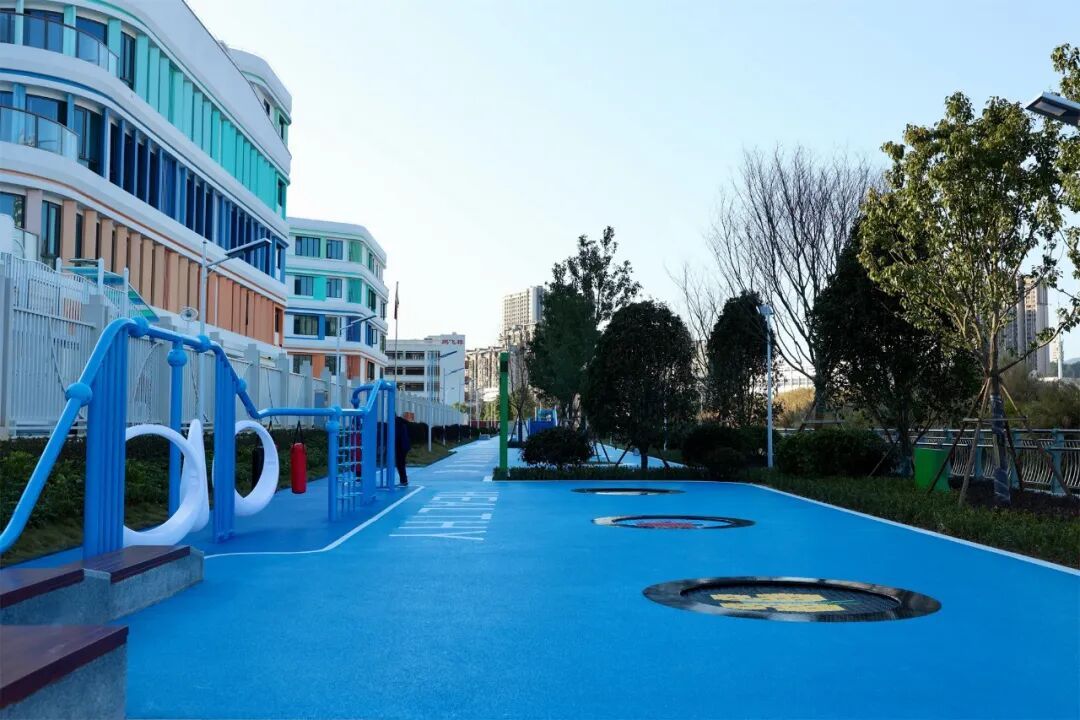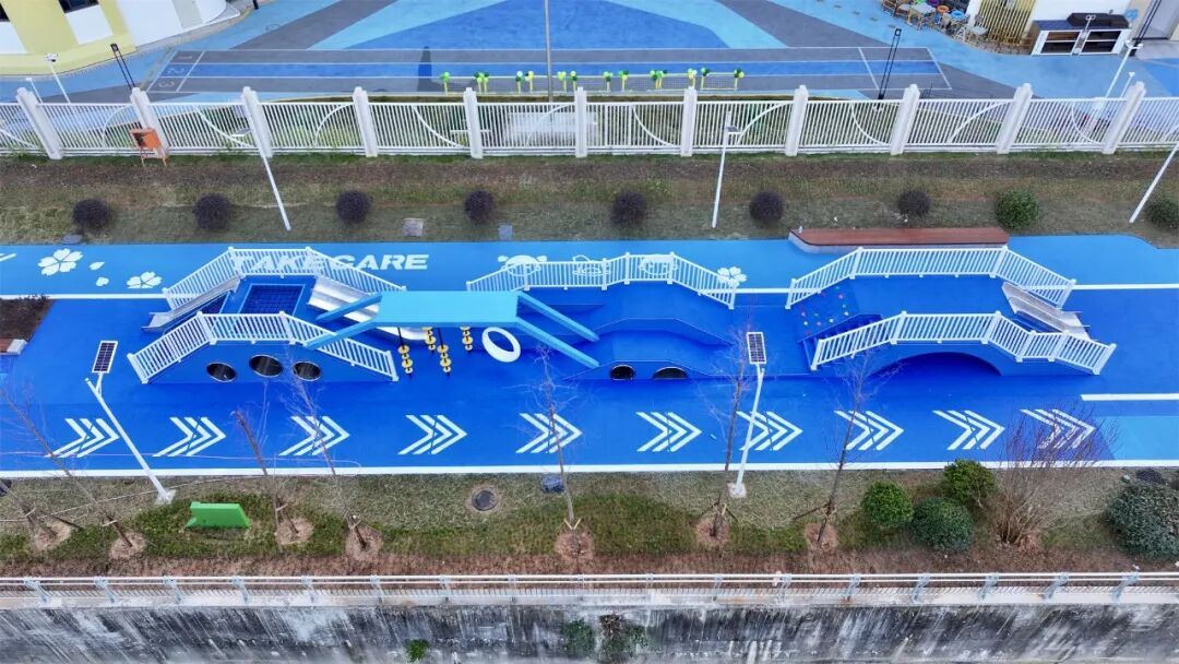 据城建项目负责人介绍,宁德市南大塘滨河绿地整治工程(东侨第三实验幼儿园段)位于南大塘与第三实验幼儿园之间,总占地面积4839平方米。项目以服务幼儿及家长为核心,围绕儿童游玩、运动、家长等候等功能进行整体设计。园内设置有滑梯、蹦床、儿童攀岩、攀爬网及攀爬架等多种适龄活动设施,并配备充足休息座椅,方便家长照看与休憩。整体色调以蓝色系为主,呼应“阳光健康”主题,与周边“四点半学堂”公园也形成衔接呼应。