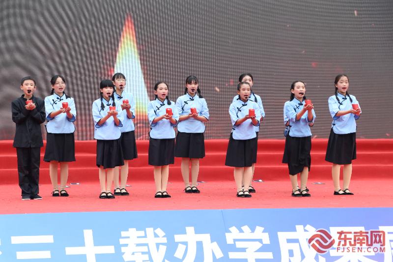 节目《我有一束光》。东南网记者 周涛 摄 据了解,蕉城区第一实验学校的发展历程底蕴深厚,由1955年创办的蓝田小学与1995年创建的蓝田中学合并而成,2016年正式定名为蕉城区第一实验学校。作为一所地处城乡结合部的九年一贯制学校,设有小学、中学及幼儿园三个教学部,共100个教学班级,在校学生4428人。此次三十载办学成果展暨元旦迎新文艺汇演的举办,不仅集中展现了学校多年来的办学成就与师生风采,更凝聚了全体师生、离退休教师及校友的情感力量,为学校未来发展注入了新的动力。 |