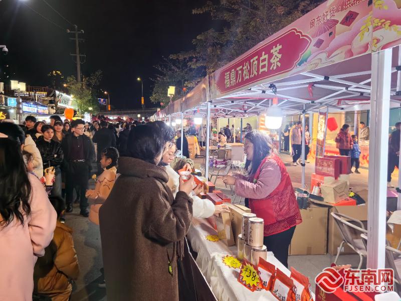 活动现场。东南网记者 周涛 摄 音乐展演将氛围感拉满,婉转的畲歌与动感的旋律交替响起,传统韵味与潮流活力碰撞出别样火花;不少游客举起手机拍摄精彩片段,带话题#寻味闽东供销助农#发布至社交平台,积极参与“舞力值换好礼”活动,集赞满20的市民顺利兑换到小礼品,进一步扩大了活动的传播力。鲜果专区的9.9元秒杀猕猴桃活动更是人气爆棚,市民们排起长队,纷纷参与这场实惠的跨年福利。“晚上来逛展销会,既能听歌看表演,又能参与互动赢礼品,还买到了新鲜实惠的水果,这样的跨年方式特别有意义。”游客林先生说道。