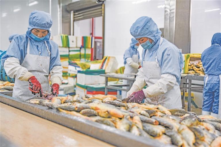 大黄鱼加工现场。杨洋 摄 每小时可处理1吨大黄鱼的智能化生产线,成为当地产业转型升级的“硬核”见证——大黄鱼产业链正从“规模养殖”稳步迈向“精深加工”。“原本单纯售卖鲜鱼利润有限,经过精深加工后,一条鱼的价值能翻三倍以上。”厂长指着包装精美的真空鱼片说。 作为宁德大黄鱼加工核心区,蕉城区已聚集90余家加工企业,年加工量超8万吨,贡献全产业35%的附加值。以“金盛水产”为龙头,当地水产企业不断突破创新,开发出大黄鱼丸、即食鱼柳、胶原蛋白肽等多元化高附加值产品,产品远销东盟、欧美等130多个国家和地区,让“宁德大黄鱼”香飘全球。