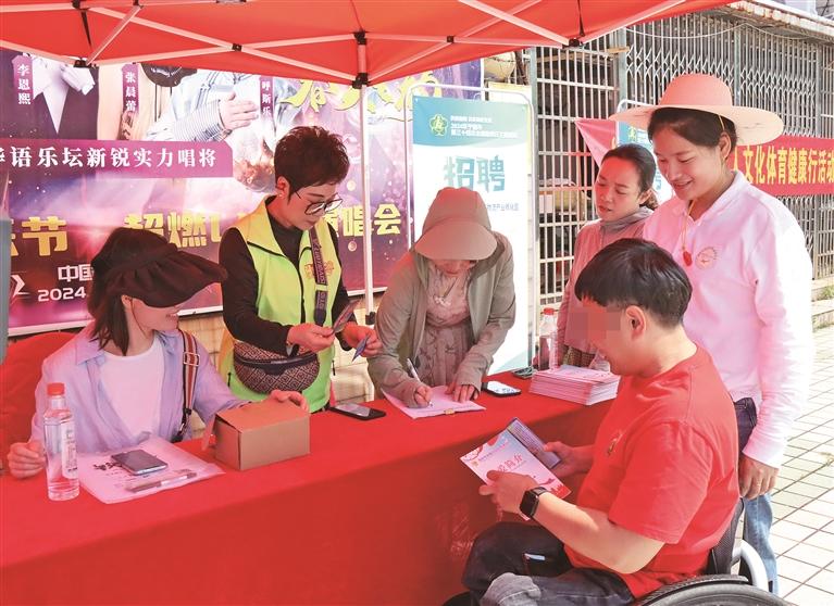 “星动未来”运动康复融合活动 “训练营让我走出困境,重获新生。”遭遇车祸后,王丽雪自我封闭了8年,脊髓损伤使她胸室以下毫无知觉,床和轮椅间的转移都十分艰难。参加首期宁德市脊髓损伤者生活重建训练营后,她不但恢复生活自理,还结婚生子,并以同侪教练的身份重返训练营,用“感同身受”的陪伴帮助更多伤友重建人生。近年来,宁德市连续4年举办训练营,通过“生活技能+心理疏导+伤友互助”模式,已帮助近百名脊髓损伤者重拾信心,其中5人成长为“本土”同侪教练。 围绕精准康复,宁德市不断延伸服务半径:实施“慈善之光·光明助残”公益行,投入582.6万元为4383名困难眼疾患者实施手术;开展“辅具服务百乡行”活动,深入乡镇社区为4783人次残疾人提供“一站式”辅具服务,发放辅具补贴1974.2万元,建成10个辅具村(社区)服务示范点;实施“星·同心”孤独症等心智障碍群体全生命周期支持计划,推出“星望职场”职业康复、“星动未来”运动康复、“星智筑梦”科普体验等“星”系列特色项目,其中“星动未来”运动康复已改善200余名心智障碍青少年肢体协调性与社交能力。开发“儿童康复服务信息化系统”,实现康复教学动态监管。 科技赋能让服务更高效。残疾人免费停车模块“入驻”中心城区政务地图,方便残疾人一键查找,免费停车;推广运用特殊人群专属通信产品,助力残疾群众“畅听”“畅视”;优化政务服务流程,将残疾人证件办理、补贴申请等事项纳入政务平台,高效办成一件事让更多残疾人群众感受到政务服务改革带来的“线上速度”与“手心温度”。 就业赋能 点亮人生梦想
