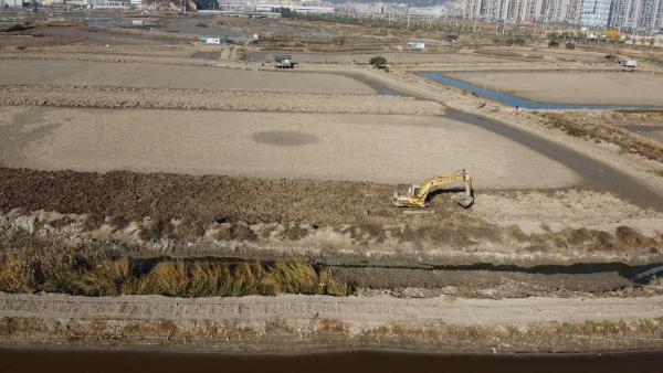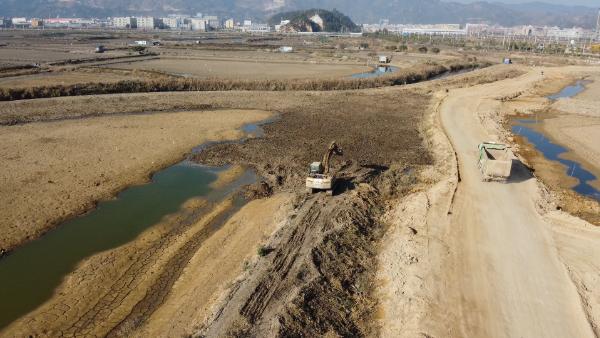 “目前完成产值3500万元,完成总项目的30%,节点性工程内堤靠近滞洪区段3020米已完成合垅,内堤靠养殖区段6028米预计本月月底完成合垅,预计三月底完成填海项目初验。”项目现场施工员叶家淼介绍。