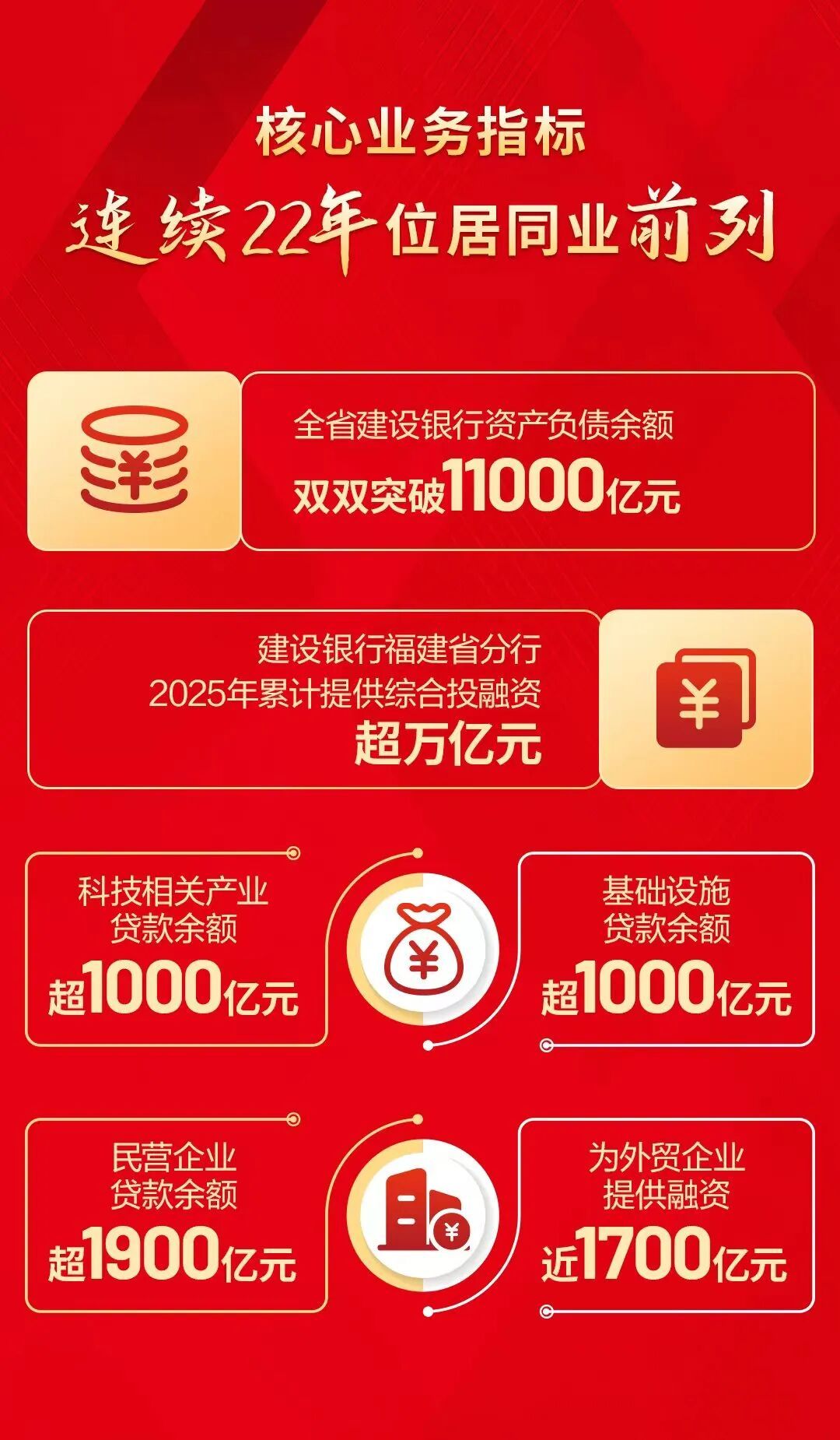 福州首个配售型保障性住房项目——滨海双龙新居 共建便民圈,建行有“数”度。福建建行推动智慧政务融入网点生态,在全辖网点落地超250项政务服务查询与办理功能;承接建设的福建省农村产权交易平台,让“数据多跑路、群众少跑腿”,有效激活农村要素市场。同时,携手超110个文明单位共建455个“劳动者港湾”,提供热饭充电、金融知识普及、非遗研学等便民服务,累计服务超1400万人次。 从支撑一座大桥的贯通,到服务全省发展的脉搏;从浇筑重大项目的钢筋铁骨,到润泽民生日常的细水微光,福建建行始终与时代同频、与福建共振。 站在“十五五”的新起点上,建设银行福建省分行将深入学习贯彻党的二十届历次全会精神,坚决贯彻党中央及省委省政府决策部署,持续提升金融服务实体经济质效,持续增强“三个能力”,以“奋勇争先”为笔、以“实干争效”为墨,为推动“十五五”实现良好开局,奋力书写新时代新征程新福建建设新篇章贡献建行力量。 |