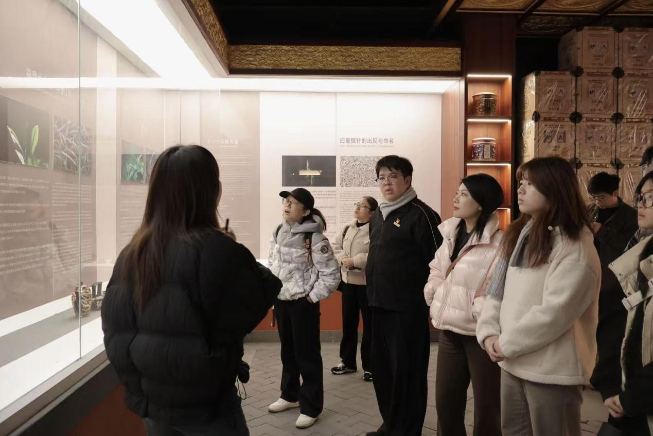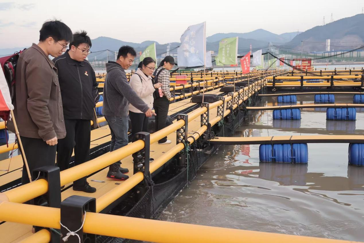 图为实践队在福鼎白茶非遗馆参观 作为福鼎乡村振兴的“金叶子”,白茶产业2025年公用品牌价值达75亿元,已连续16年跻身“中国茶叶区域公用品牌价值十强”。实践队以六妙白茶股份有限公司为调研核心,沉浸式走访生态茶园与现代化生产车间,全面了解白茶产业全链条发展情况,探寻科技与文化为传统产业注入的新活力。在福鼎白茶非遗馆,队员们通过实地参观和深度访谈,详细掌握了福鼎白茶在非遗技艺传承、茶旅融合开发、文创产品创新等方面的发展路径,了解到当地如何通过“非遗技艺活化+年轻化传播”打破圈层壁垒,让白茶成为承载地域文化的重要载体。“以前觉得白茶只是饮品,现在才明白每一片茶叶里都藏着山海资源转化的密码。”实践队员的感慨道出了此次调研的收获。 与茶山美景交相辉映的,是福鼎蓬勃发展的海洋渔业。实践队兵分两路开展调研,一路深入福建闽威实业股份有限公司,系统探访鱼苗培育、生态养殖、精深加工的全产业链布局;另一路前往福鼎市店下镇巽城村,走进全国唯一花鲈良种场,与养殖户并肩劳作,近距离观察水质实时监测、智能化投喂等科技应用场景,真切感受科技对渔业产业升级的推动作用。“从鱼苗孵化到产品上市,每个环节都离不开科技支撑和模式创新,这让我们看到了专业知识服务产业的广阔空间。”实践队指导老师表示。