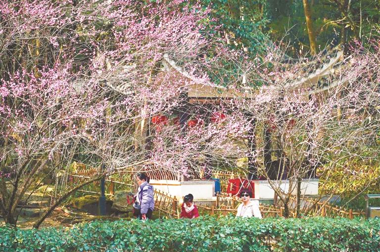 近日,蕉城区南漈公园的梅花盛开,吸引市民闻香打卡,感受满园芬芳。南漈公园倚山而建,草木葱郁、山幽水秀。每年梅花盛开之际,都会吸引不少游客慕名而来打卡游玩,寻梅影、赏梅姿、品梅韵,一睹人间“梅”好。(闽东日报记者 陈容 摄