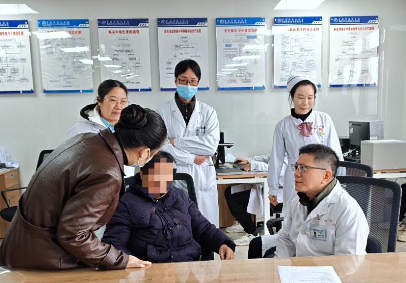 门诊结束后,潘晓东教授团队深入病房开展教学查房。结合具体病例,潘晓东教授与团队成员黄天文教授、吴锡林教授、罗玲教授、余尔涵教授详细询问患者病情演变、治疗经过,依据影像学资料、实验室检查结果对患者病情进行系统分析,围绕诊断思路、治疗策略与预后评估,为神经内科医务人员提供了面对面的临床指导。