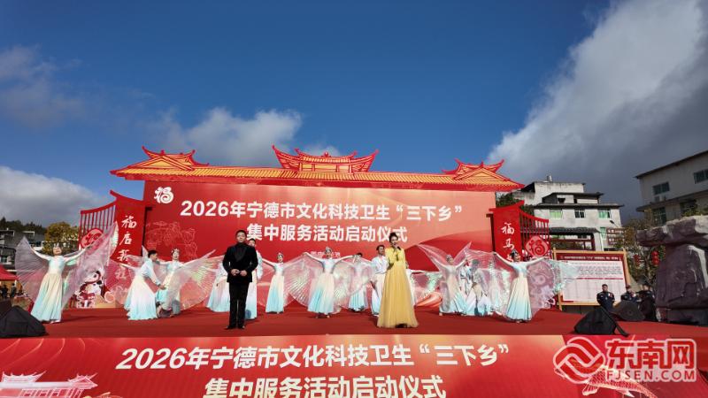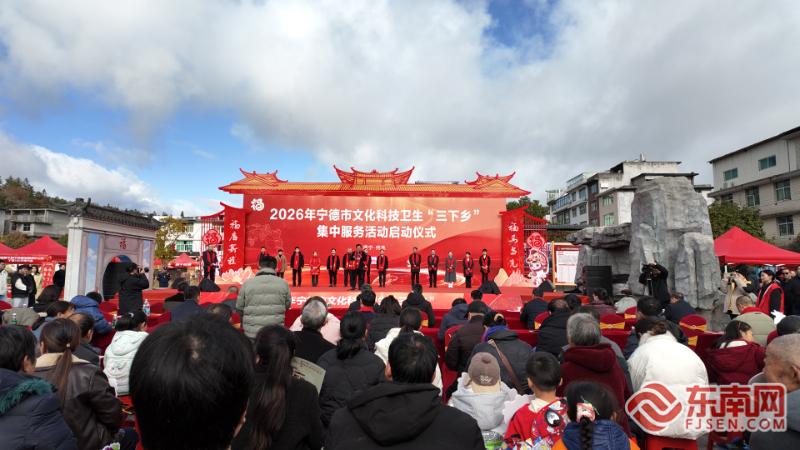 东南网2月7日讯(本网记者 潘月容)2月7日,2026年宁德市文化科技卫生“三下乡”集中服务活动在周宁县纯池镇纯池村举行。现场市、县两级文艺工作者们为当地村民带来了精彩的文艺表演,并在现场设置文化科技卫生“三下乡”惠民服务展位,通过文艺演出、非遗展示、健康义诊、科普互动等多样形式,“零距离”服务当地群众。