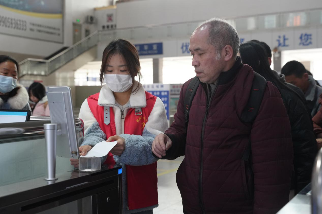 活动现场,志愿者们身着统一标识,精神饱满地投入到各项服务工作中。在车站工作人员的指引和培训下,他们分别在进出站口、候车大厅、售票窗口、自助服务区等关键位置,为旅客提供引导咨询、秩序维护、行李搬运、重点旅客帮扶、电子客票使用指导、应急救助等多样化志愿服务。他们用热情的笑脸和细致的服务,化解旅客旅途中的不便,让返乡、出行的脚步更加从容顺畅。