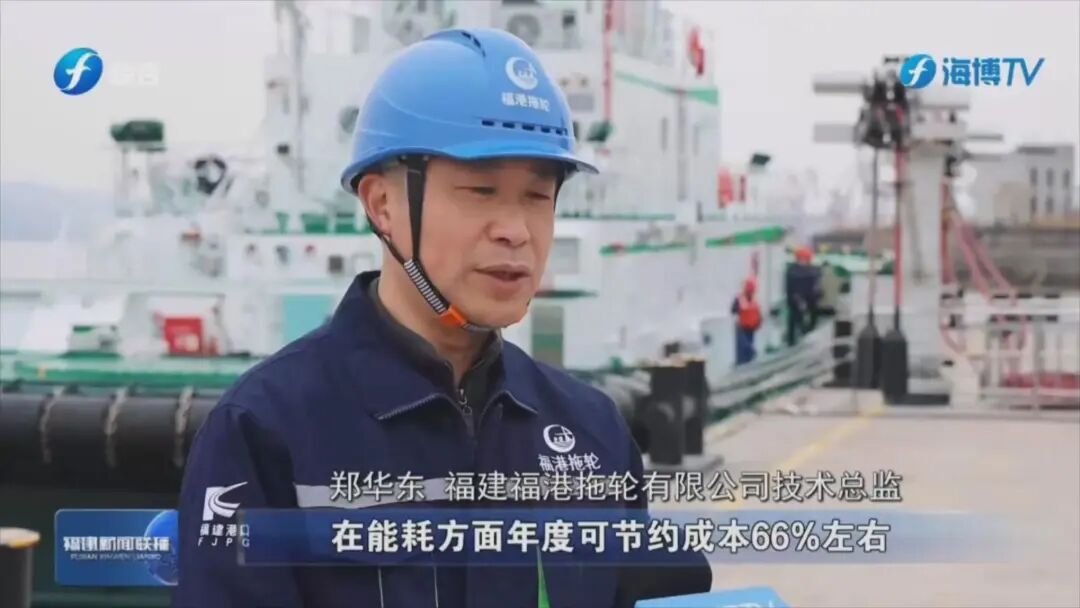 福建福港拖轮有限公司技术总监 郑华东:“与普通燃油拖轮相比,在能耗方面年度可节约成本66%左右,可实现完全的零排放。”