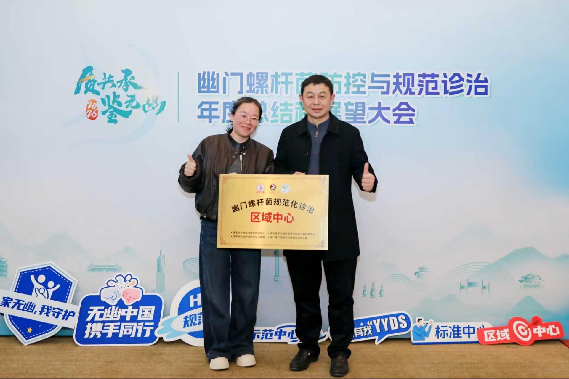 东南网2月12日讯(通讯员 郑俊生)2月7日,幽门螺杆菌防治与规范诊治年度总结暨展望大会在福州市召开。消化内科在宁德市闽东医院副院长刘兆云与科室龚清全主任医师的带领下,经过一年多的不懈努力,相关工作获得专家组一致认可。消化内科副主任医师陆翠钦代表医院积极参与会议并接受授牌,共同见证了“宁德市幽门螺杆菌规范化诊治区域中心”正式揭牌成立。该中心作为宁德市首家幽门螺杆菌(Hp)规范化诊疗区域中心,标志着宁德市正式纳入全国幽门螺杆菌规范化诊疗网络体系,为本地区相关疾病的系统化、标准化诊疗开启了新篇章。