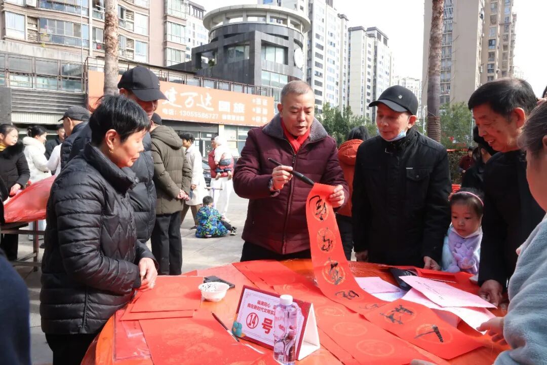 会场外围,书法家们挥毫泼墨,红纸翻飞间,一副副寓意吉祥的春联、一个个饱含祝福的“福”字新鲜出炉,让居民们把新春的美好祝愿带回家。此外,现场还开展了反诈、征兵等宣传活动。