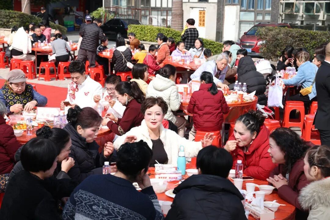 本次活动由中共宁德市委宣传部(文明办)、东侨开发区新时代文明实践中心主办,以弘扬“福”文化、践行新时代文明新风为核心,将党和政府的关怀送到群众心坎上。活动现场,15桌团圆餐依次排开,其中5桌由社区精心筹备,为新就业人员、特殊群体准备;10桌则由居民自发参与,大家带着自家拿手家常菜、特色点心共享美味,不少居民还现场加工食材,煎炒烹炸间,烟火气与幸福感拉满。