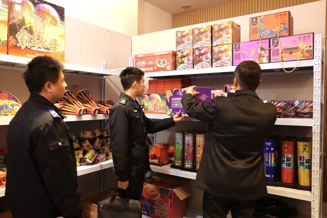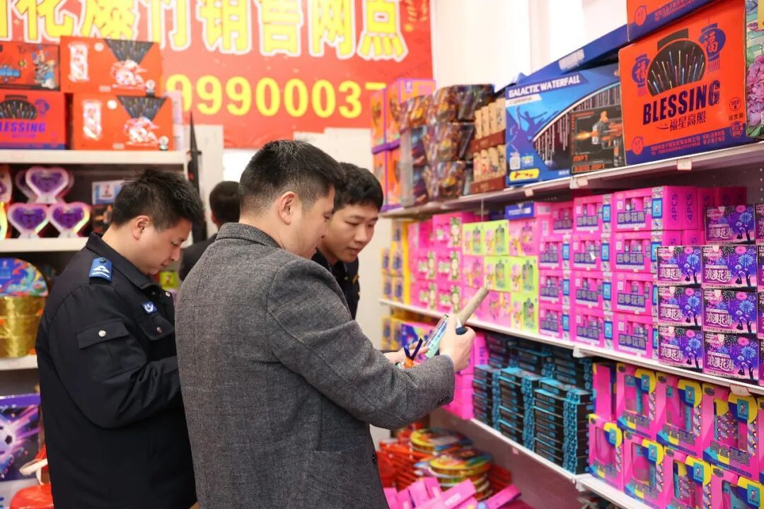 检查组先后前往绿萝贸易商行、花兰贸易商行、森乐贸易商行和宾悦贸易商行,对烟花爆竹临时零售点及小区周边便利店、小超市等场所进行拉网式排查。检查中,各部门各司其职、协同配合,对沿街商铺是否存在无证无照经营、超范围经营、销售非法渠道或不合格烟花爆竹产品、储存场所不符合安全规范等违法违规行为进行逐一核查,同时,还现场向经营户和群众普及烟花爆竹安全管理相关法律法规,讲解非法烟花爆竹的危害,引导大家守法经营、安全选购、自觉抵制违法违规行为。