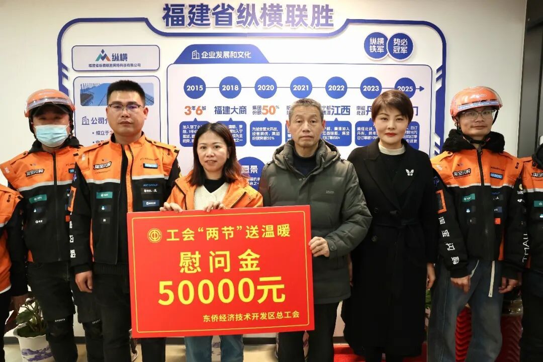 慰问组一行前往福建省纵横联胜网络科技有限公司(宁德淘宝闪购运营中心)、盈丰佳园小区、福建亚南电机有限公司和宁德厦钨新能源材料有限公司,看望慰问新就业形态劳动者、困难职工和劳模代表,并送上慰问金,对他们致以节日的问候和祝福。