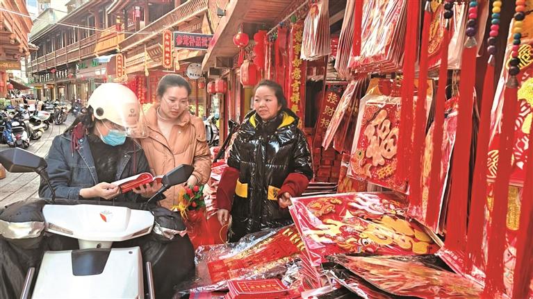 春节临近,福安市传统年货市场迎来了一年中最热闹的时节。从特色糕饼年糖,到红红火火的家居装饰品,市场消费全面升温,新春氛围拉满。在城北街道新阳路一家老字号糖糕饼店,花生糖、芝麻糖、炒米糕、面糖、小米酥、糍豆等产品琳琅满目、甜香四溢,吸引了许多市民前来选购。(闽东日报 兰文馨 摄)
