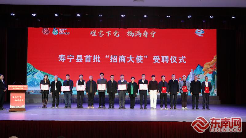 为10位乡贤颁发首批“招商大使”聘书。寿宁融媒体中心供图 现场,沈世林、范圣忠、李寿山等10位乡贤获颁首批“招商大使”聘书。李寿山表示将以平台为纽带,吸引教育界力量助力寿宁,以教育振兴夯实发展根基;执业33年的商事律师范圣忠则承诺,发挥专业与人脉优势,为寿宁招引更多优质企业。