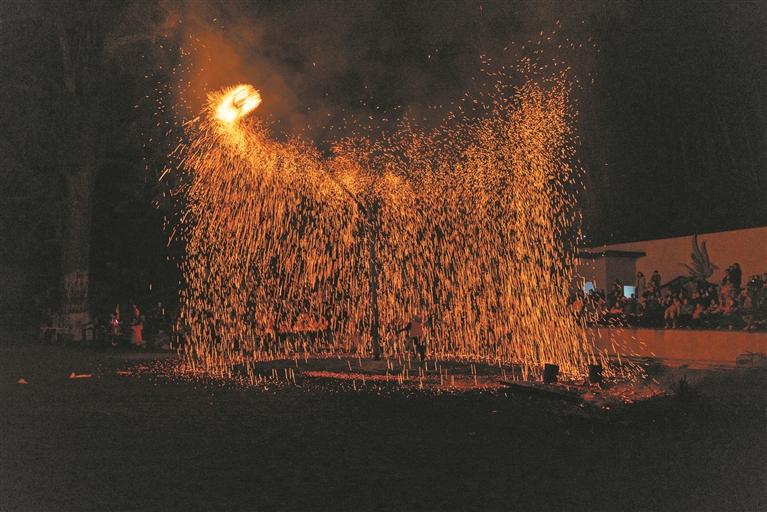 “畲族火凤凰”表演 暮色四合,“畲族火凤凰”表演精彩亮相,身着畲族服饰的村民与游客手拉手,围着熊熊篝火载歌载舞,将畲族文化底蕴与新春喜庆氛围深度融合。 夜空中,一团火球随着旋转速度加快,两边火焰上下舞动,出现了一只若隐若现的“火凤凰”,洒落的火星,像流星雨般绚丽多彩,引得现场阵阵喝彩。2025年,巴地村已举办“火凤凰”表演36场次,累计接待游客超4万人次。 “畲族火凤凰习俗”是福建省级非物质文化遗产代表性项目,也是巴地村撬动“文化古村游”的重要支点。作为中国特色少数民族村寨,近年来,巴地村立足畲乡特色,锚定文旅融合发展路径,深入挖掘畲族文化内涵,大力传承畲歌、畲舞等,持续推动村容村貌和文旅产业同步升级,让传统文化在活化中焕新,成为乡村振兴的新动能。 如今的巴地村,不仅守住了畲族文化的“根”与“魂”,更凭借文旅融合新路子,让村民看到了发展的希望,也让古老畲乡焕发出新的生机。(闽东日报记者 朱灵塬 甘叶斌 文/图) |