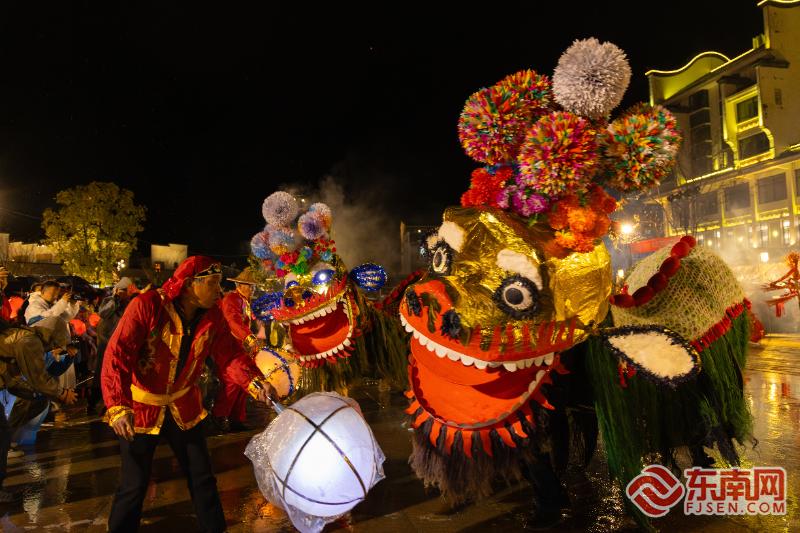 舞狮表演。陈伟杰 摄 白天的双溪古镇,是非遗体验的欢乐海洋。中午12时左右,文庙、张府、供销社、屏南有礼馆等点位人头攒动,打卡集章赢好礼活动点燃了游客的参与热情。薛府的钱眼挑战、文庙的元宵猜灯谜、张府的投壶纳福、供销社的瓶装立水挑战,一个个趣味民俗游戏前排起长队,游客们摩拳擦掌、一试身手。