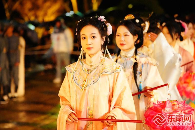 古风舞蹈表演。陈伟杰 摄 双溪古镇自明代起,每年正月皆举办元宵民俗活动,这份延续百年的热闹,如今已是省级非物质文化遗产代表性项目。其中,双溪铁枝跻身国家级非物质文化遗产代表性项目名录,鼓亭音乐获评市级非物质文化遗产代表性项目名录,深厚的文化底蕴让双溪元宵灯会常年游人如织、万人空巷。