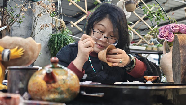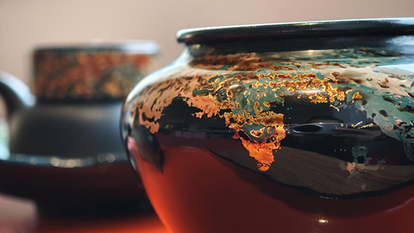 “因为了解漆画的人相对较少,所以我把漆画艺术运用到杯子、花瓶、茶盘等器物上,希望能让更多人认识和了解大漆。”卓颜君说。