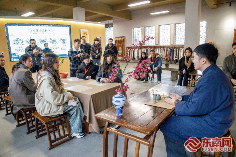 媒体记者和网络达人们打卡福建相牌服饰有限公司,体验香道制作。 魏迎杰 摄 4日上午,活动在富溪商贸古镇启幕,嘉宾们在主题签名墙留名后,开启沉浸式体验之旅。大家打卡省级文保单位归驷桥,用镜头和笔触记录山茶油制作、柘荣剪纸、竹钉鼓制作等非遗技艺的魅力;在大众茶馆感受古镇闲适生活,传递柘荣文化印记。“寻味市井”环节,嘉宾们带着#逛群英会吃柘荣味#话题探寻柘荣街头美食,品味城市人间烟火。