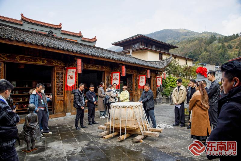 媒体记者和网络达人们体验竹钉鼓制作技艺。魏迎杰 摄 柘荣县委书记詹少铃认真听取发言并互动交流,感谢各界对柘荣的关注与推介,希望大家持续挖掘柘荣之美、传递柘荣之好、汇聚柘荣之力,策划创意话题活动,将线上“流量”转化为发展“声量”,让更多人知柘荣、爱柘荣、建柘荣。