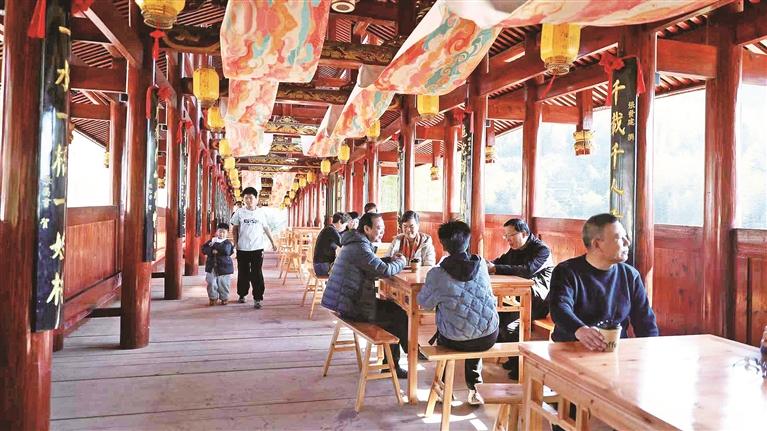 库区茶山开茶忙。王志凌 摄 多年来,缪奶秋有过丰收后的喜悦,也有过市场“震荡”带来的无奈,但他始终执着地守着这片葡萄园。这些年,随着“甜蜜事业”蒸蒸日上,缪奶秋的生活也越过越好,冰箱、空调、彩电……家中各类家电一应俱全。2025年,他还新添置了一台农用小三轮,运送葡萄更方便了。“再奋斗两年,争取把旧房子也翻新了。”缪奶秋的言语中透露着对未来的憧憬。 在如今的官田村,葡萄已成为继茶叶之后的又一富民产业。“目前,全村葡萄种植规模有1300余亩,2025年年产值达2000余万元。”官田村党支部书记缪雄坦言,葡萄产业的发展离不开移民部门给予的帮助。从机耕路等基础设施配套,到邀请农技专家到田间地头进行指导……正是移民部门的一路扶持,才让这份“甜蜜事业”越酿越甜。 山这头是一条瓜果飘香的致富路,山那头的清源镇韶托村,文旅产业发展也势头正劲。 一泓碧水如翡翠镶嵌大地,垂柳拂岸,彩虹步道蜿蜒,繁花绿树掩映着崭新的黄槐文化广场……行走在清源镇韶托村,风景如画,游人如织。 近年来,韶托村依托得天独厚的山水景观,打造“黄槐湖”休闲康养旅居项目,将废弃管理房变身时尚咖啡厅,把荒塘耕地改造成浪漫露营地,昔日的移民村渐渐凭借“颜值”打响名气。众多游客循着稻香、果香、咖啡香一路而来,“热辣滚烫”的文旅经济已成为当地产业发展的新引擎。