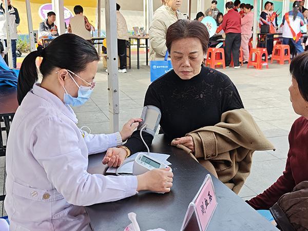 义诊现场人头攒动。医护团队设立健康服务台,免费为群众测量血压、血糖,累计服务百余人次。针对中老年群体的健康需求,泌尿外科团队同步开展前列腺癌免费筛查,现场完成筛查十余人,并结合病例向前来咨询的群众讲解前列腺疾病防治知识;乳腺外科医生围绕女性乳腺健康,耐心开展科普宣教,引导群众树立早防早诊意识。此外,医护团队还开设一对一咨询台,针对高血压、糖尿病等慢性病管理和常见病防治,提供个性化健康指导,受到现场群众一致好评。