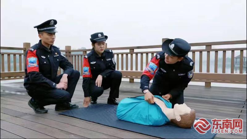 她的爱,更体现在对生命的至高尊重——长期坚持无偿献血,主动登记成为造血干细胞和器官捐献志愿者。这份融入血脉的奉献精神,在她2021年加入环东湖巡防队后,完成了从“志愿红”到“守护蓝”的华丽转身与能量叠加。她将福建省红十字会救护师资的专业优势与公安实战深度融合,精心制定培训计划,手把手向战友们传授急救、水上救援等技能,并走进社区,将心肺复苏、创伤包扎等自救互救知识播撒给万千群众。五百余场培训,惠及上万人次,她用专业筑起了一道坚实的生命防线。 担当如铁:十余公里湖岸线上的平安“哨兵”