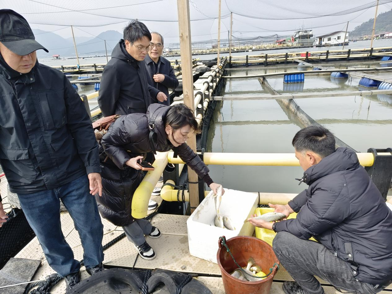 东南网3月8日讯(通讯员 林长顺)为加快推进蕉城区渔业绿色循环发展试点项目实施,强化大黄鱼产业全产业链标准化建设,3月7日,东海水产研究所宁德创新研究院郭全友研究员、福建省闽东水产研究所全汉锋研究员带领蕉城区水技站科技特派员陈庆荣、李安涵及宁德师院研究生,深入蕉城区大湾海域大黄鱼养殖品质提升标准化示范基地开展技术指导与调研工作。该示范基地隶属于东海水产研究所宁德创新研究院承担的蕉城区渔业绿色循环发展试点项目——“大黄鱼产业全产业链标准体系构建及示范项目”,是推动当地大黄鱼产业提质增效、践行绿色发展理念的重要载体。