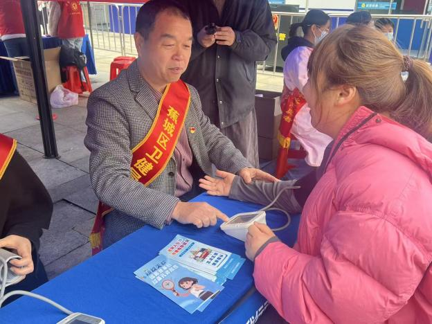 本次活动由区卫健局党支部书记带队,组织支部党员志愿者、学雷锋协会志愿者及医务志愿者共同参与。活动紧扣卫生健康便民服务核心,将义诊服务与文明实践深度融合,党员干部与志愿者们以实际行动践行雷锋精神,充分展现卫健系统为民服务、担当作为的良好风貌。活动现场秩序井然、氛围热烈,全体人员分工明确、各司其职,始终以热情耐心的态度,为过往市民提供贴心周到的服务,把健康关怀和文明新风切实送到群众身边。 活动现场,志愿者们为居民免费提供量血压、测血糖等基础诊疗服务,针对不同人群开展一对一健康指导,细致讲解日常饮食调理、科学用药、作息管理等健康知识,引导居民主动关注自身健康。同时,现场同步开展“三减三健”及慢性病防治专项宣传,通过科普讲解、发放宣传资料等方式,进一步提升群众健康意识和自我防护能力,筑牢群众健康防线。