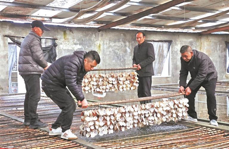 养殖户开展育苗工作 春潮涌动,农事正酣。随着海区水温逐渐回升,福鼎市迎来坛紫菜育苗的黄金时节。连日来,当地各紫菜育苗厂抢抓农时,开展育苗工作。 走进位于福鼎市硖门畲族乡的福建蓝海紫菜育苗厂,工作人员紧锣密鼓地开展坛紫菜果孢子采集工作。据技术员董美良介绍,育苗首选去年的第三水紫菜作为母苗,因其叶片细嫩强壮,经甩干、晾干及保鲜处理后,待时机成熟便可进行采苗。现场,工作人员将处理好的母苗装入网袋浸入水中,通过竹竿击打、搅拌水体等方法促使母苗释放果孢子。随后,大家将附着贝壳帘的竹竿放入苗池“新房”中,并将静置后的果孢子水均匀泼洒,让果孢子在池中自由寻觅“家园”。 “我们主要培育‘申福2号’坛紫菜品种,该品种具有耐高温、抗逆性强等特点,有效解决传统品种易烂苗的难题。”育苗厂负责人林德雄告诉记者,该品种出苗率高、产量稳,海区栽培鲜菜产量比传统品种提高30%以上,经济效益显著,深受养殖户认可。 “今年我们培育可供3万多亩海域养殖的紫菜苗,主要供给本省及山东、江苏、浙江等地。根据南北海区的下苗时间差异,从2月到3月分批育苗,整个培育周期6~7个月达到采苗条件。”林德雄说。 为保障紫菜苗健壮生长,各育苗场实行精细化管护。育苗室通过通风控温、按需覆盖遮阳网调节光照,模拟最适生长环境;技术人员每日监测池水温度、盐度等关键指标,定期清洗贝壳表面,清除杂藻与污泥,严控水质环境,为种苗生长保驾护航。 小小贝壳育出“金苗苗”,撑起富民大产业。作为“中国坛紫菜之乡”,福鼎是福建省坛紫菜重点养殖县(市),已形成育苗、养殖、加工、流通、销售全产业链,覆盖该市沿海6个乡镇35个行政村,惠及群众2万余人,成为乡村振兴与渔民增收的支柱产业。 近年来,当地不断加大良种培育力度,先后引进上海海洋大学“申福1号”“申福2号”等新品种,年培育紫菜新品种(系)1000亩以上。福鼎市共有紫菜育苗室27家,除满足本市养殖需求外,苗种和育苗技术推广至浙江、江苏、山东等地。目前,福鼎市紫菜养殖面积达2.2万亩,各类加工生产线150条,全产业链产值达20余亿元。(闽东日报记者 黄楚妍 通讯员 杜应影 文/图) |