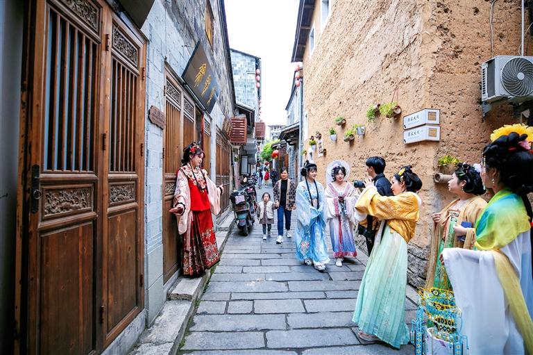 鹏程历史文化街区内游客打卡拍照。郑霄 摄 站在“十五五”开局的新起点,蕉城将紧扣“开局起势、实绩检验”年度主题,主动融入市委“1571”策略体系,以项目为基、以城市为脉、以民生为本,持续激活发展动能、厚植增长优势,以实干实绩开创更加美好的未来。