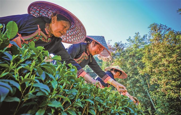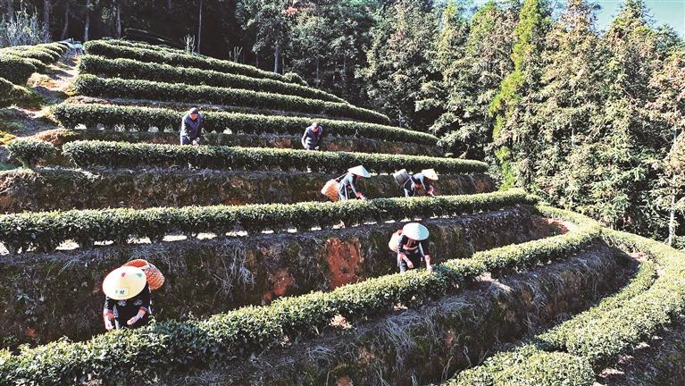 春季采茶忙 “今年气候适宜、管护到位,茶青不仅肥壮,香气也更足了。”五树缘茶业有限公司总经理苏昌茂手捧一把鲜叶告诉笔者,目前首批春茶已接到来自江浙沪等地的订单,将凭借“鲜、香、醇”的独特品质抢占春茶市场。 山上采茶忙,山下制茶香。走进茶叶加工车间,浓郁的茶香扑鼻而来,摊青、杀青、揉捻、烘焙、提香……一道道工序有条不紊地进行,热气裹挟着清高的茶香弥漫开来,沁人心脾。