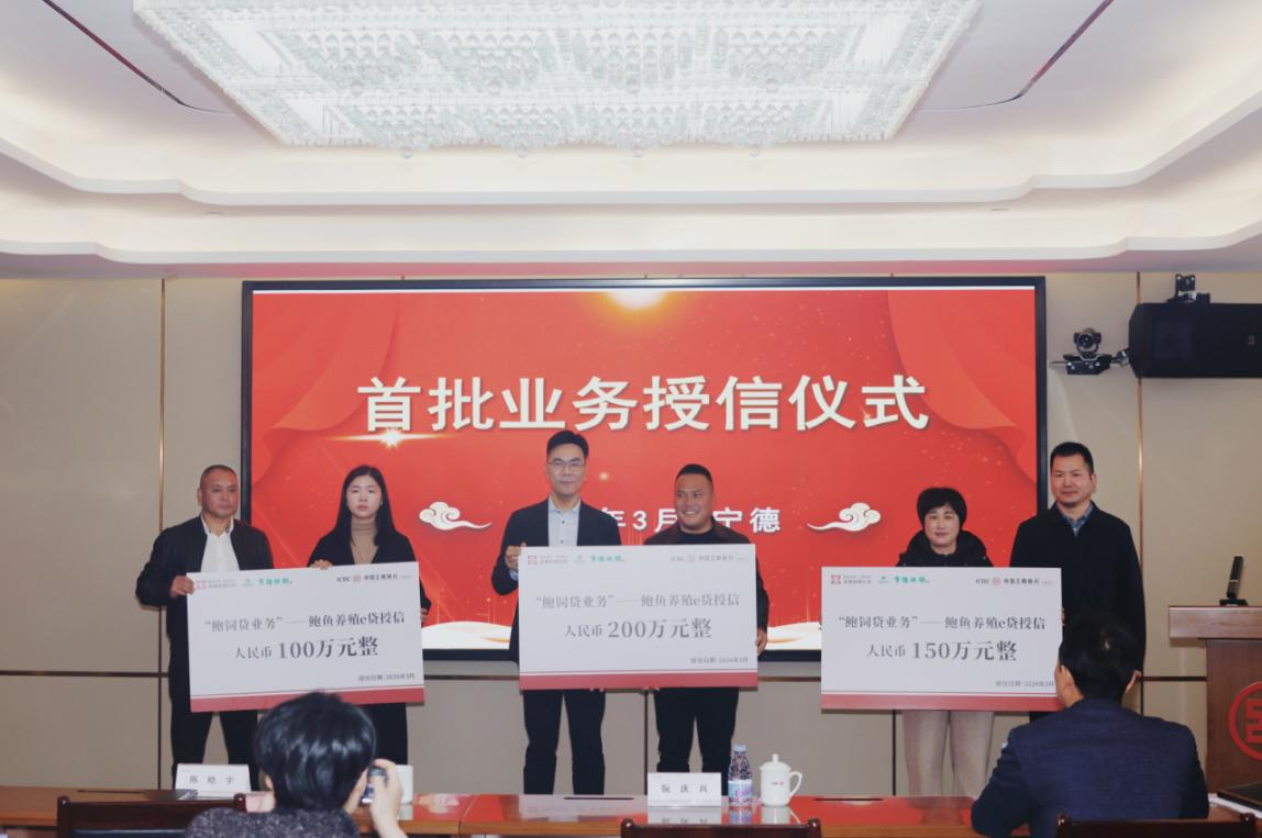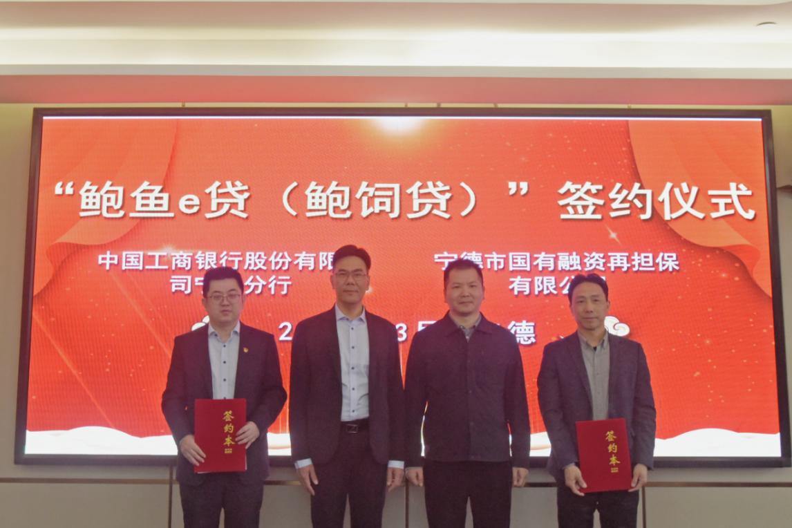 3月17日,工商银行宁德分行成功举办“鲍鱼e贷(鲍饲贷)”合作签约仪式。宁德市国有融资再担保有限公司、宁德市供销合作社联合社等单位负责人及养殖户代表参加本次活动。