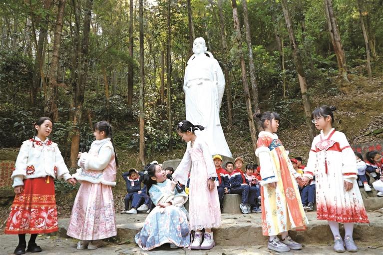 3月18日,蕉城区第四中心小学300余名三年级师生及家委代表走进南漈公园,开展“跟着陆游游蕉城”春季研学旅行活动。