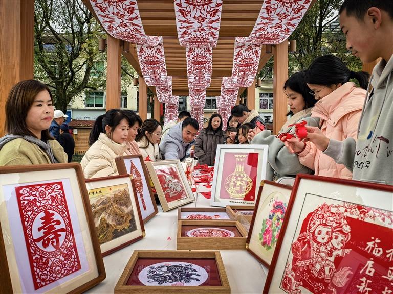 3月21日下午,由柘荣县文化馆主办的“自在柘荣·非遗赋美”游园雅集活动在仙屿公园文化长廊举行。现场有畲族祝酒、柘荣剪纸、柘荣剪刀、竹钉鼓等非遗体验活动,吸引了众多市民和游客参与,沉浸式体验柘荣非遗。                                (闽东日报 林顺永 刘东煌 摄