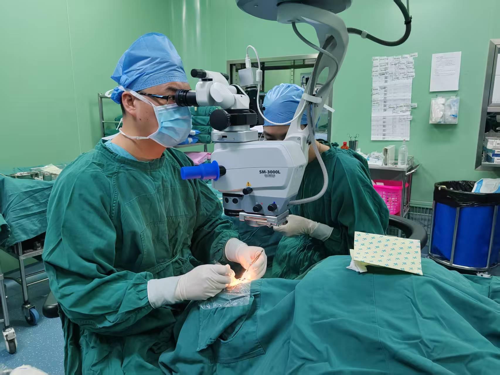面对危重病情,王雨晴团队果断决策,采用省内很少医院能开展的最新前沿技术——左眼角膜病灶清创+自体角膜板层移植术实施紧急手术。术前,张大娘紧张焦虑、言语不畅、双手颤抖,医护人员耐心安抚,缓解其情绪。手术中,王雨晴精准操作、细致施治,仅用时20分钟便顺利完成手术。