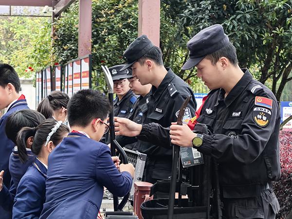 民警向同学们展示警用装备。东侨公安供图 警用装备展示环节点燃了同学们的热情,巡特警现场演示北斗定位器、电击脚锁、电击枪、破门器等警用装备,一件件硬核装备依次亮相,让同学们直观感受科技强警的力量,了解警用装备在守护国家安全、维护社会安宁中的重要作用。民警还结合仿真毒品模型,详细讲解毒品的种类、伪装形式及严重危害,引导同学们提高警惕,学习识毒防毒知识,筑牢拒毒思想防线。