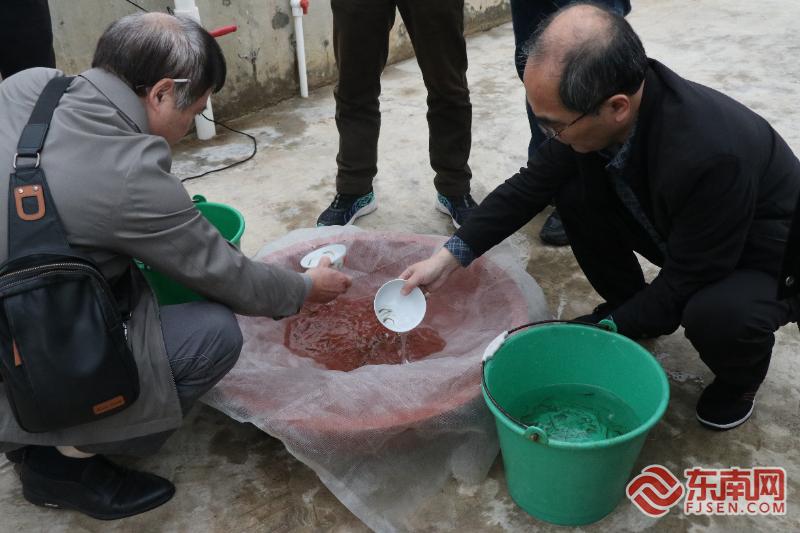 验收组专家正在抽样检查鱼苗。东南网记者 周涛 摄