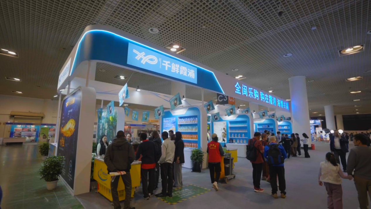 霞浦是全国重要的海洋渔业生产基地之一,渔业年总产值超150亿元。此次海博会,霞浦组织千鲜汇融、赶海父子、渔夫子、源之初、钦龙食品、乐岸食品等20家县内海洋食品企业组团参展,并以“千鲜霞浦”区域公用品牌集体亮相。展厅中部的“千鲜霞浦”特装馆内,海带、紫菜、海带苗、海参、大黄鱼等特色海产品集中展销,吸引不少采购商和参展客商品尝、咨询、对接,现场洽谈氛围活跃。