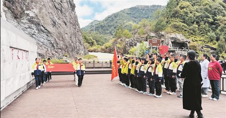 虎贝中心小学供图 4月1日上午,蕉城区虎贝中心小学组织师生徒步前往蕉城区虎贝镇百丈岩,开展“我们的节日·清明”之“‘真行’少年祭英烈百丈英风永传承”主题活动,以庄重仪式缅怀革命先烈,厚植爱国主义情怀。 祭奠现场庄严肃穆,红领巾讲解员向同学们深情讲述九壮士英雄事迹,让红色往事直击人心。随后,队员们分组行动,擦拭纪念碑、清理周边环境,以实际行动致敬英烈。清洁完毕后,祭奠仪式有序进行,全体人员肃立、出旗,齐声奏唱国歌。师生依次敬献鲜花,默哀3分钟,深切缅怀先烈壮举。在教师带领下,全体少先队员高举右拳,重温入队誓词,铿锵誓言在山间久久回荡。(闽东日报见习记者 黄雯妍 通讯员 张晓岚) |