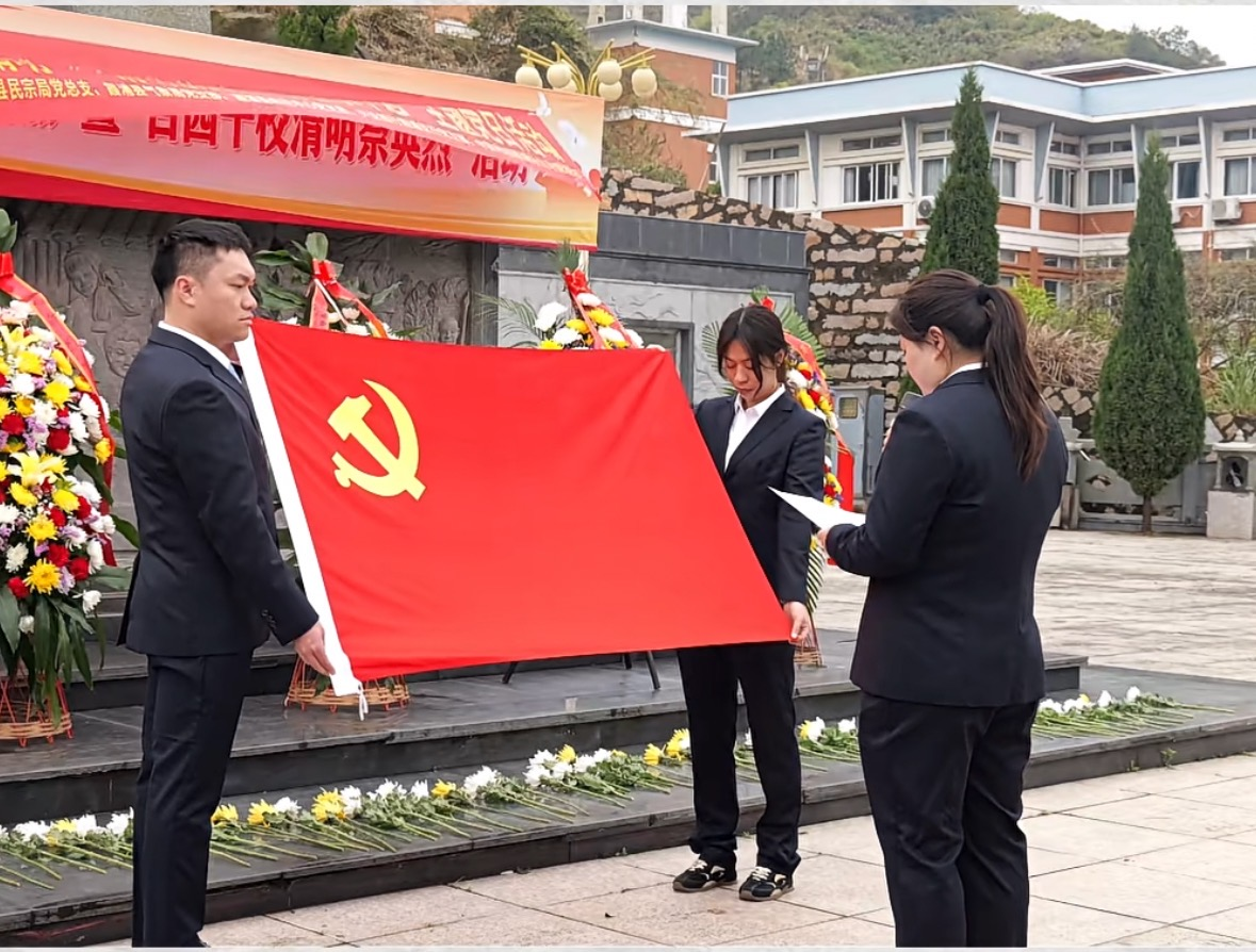签约仪式结束后,双方党员代表一同前往霞浦革命烈士陵园,开展“清明祭英烈 初心永不忘”主题党日活动,缅怀革命先烈,传承红色基因。活动现场庄严肃穆,松柏苍翠、哀乐低回,全体党员身着正装、佩戴党徽,怀着无比崇敬的心情,向革命烈士纪念碑敬献花篮,整理花篮缎带,全体人员肃立默哀,深切缅怀为民族独立、人民解放和国家富强、人民幸福献出宝贵生命的革命先烈,表达对英烈的深切哀思和崇高敬意。 默哀完毕,全体党员面向鲜红的党旗,举起右拳,庄严宣誓,重温入党誓词,铿锵有力的誓言回荡在烈士陵园上空,既是对革命先烈的告慰,也是对初心使命的坚守,进一步坚定了全体党员听党话、跟党走的信念决心。活动最后,全体党员依次走向烈士墓碑,亲手献上鲜花,逐一瞻仰墓碑,追忆英烈事迹,感悟革命初心。
