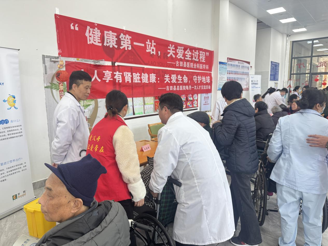 同日,古田县医院的委员们以世界肾脏日为契机,组织池善新团队,联合福建医科大学附属第二医院肾内科专家施书涵,走进古田德亨仁厚康养中心,开展主题义诊活动。此次活动紧扣2026年世界肾脏日“人人享有肾脏健康:关爱生命,守护地球”的核心主题,聚焦慢性肾脏病早筛早治、科学护肾核心理念,重点关注老年群体这一慢性肾脏病高危人群,深入推进优质医疗资源下沉。义诊现场,肾内科、老年科、全科等多学科专家与福医二院专家施书涵紧密协作,为康养中心的老人们提供全方位、精细化的健康服务。施书涵专家临床经验丰富,以其专业、权威的建议,为现场老年群众解答了诸多健康困惑,帮助大家树立科学的护肾理念。活动通过多学科联动,切实将优质医疗服务送到基层老年群众身边,有效提升了老年群体对慢性肾脏病的防控意识和自我管理能力。