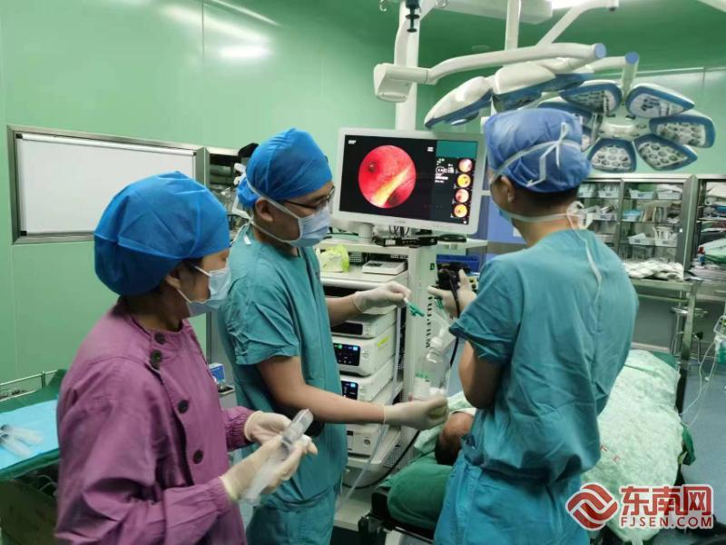 手术现场。宁德市医院供图 鉴于患者气喘明显,血氧饱和度低,为确保手术安全,术前呼吸与危重症医学科科主任方桂桔组织科室进行多学科讨论,制定详尽的围手术管理及手术方案,决定采取分次进行肺灌洗术,即先进行右肺灌洗,1周后再行左肺灌洗。