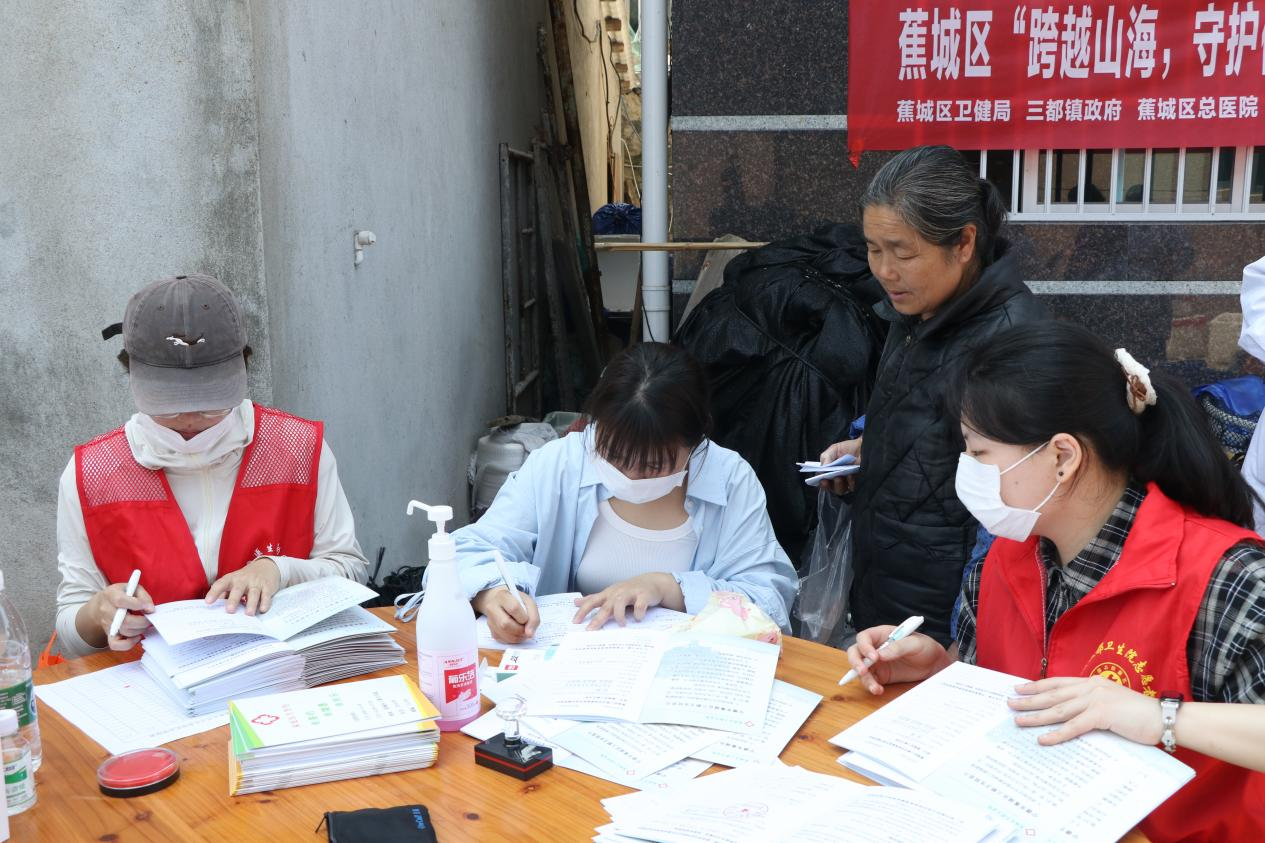 入户随访结束后,巡诊团队乘船前往七星村乌岩下自然村,借用村民桌椅布设简易医疗点,等候出海作业的渔民上岸就诊。上午11点起,返程的渔民陆续聚集到义诊点,专家们耐心答疑解惑、开具药品,同步开展血糖、血压等基础检查,三都卫生院工作人员则现场宣传家庭医生签约服务,引导群众主动签约。